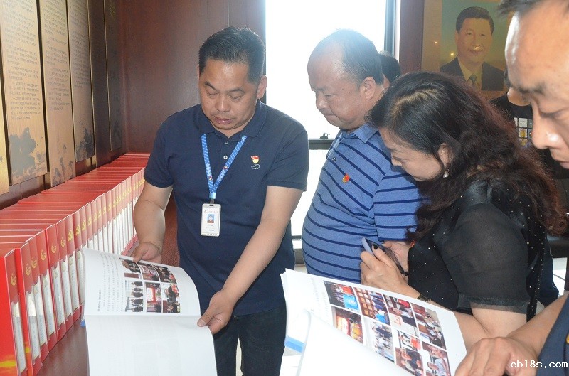 在紫金实业集团工会主席汤建国的带领下,大家首先参观了业务大厅和各类活动室,了解其主要工作范畴和工作方式;随后参观主题教育活动室、党员宣誓仪式厅,查阅了党建资料,观看了宣传影片,最后在党员活动室进行了座谈交流,听取了紫金实业集团党支部标准化建设经验介绍。