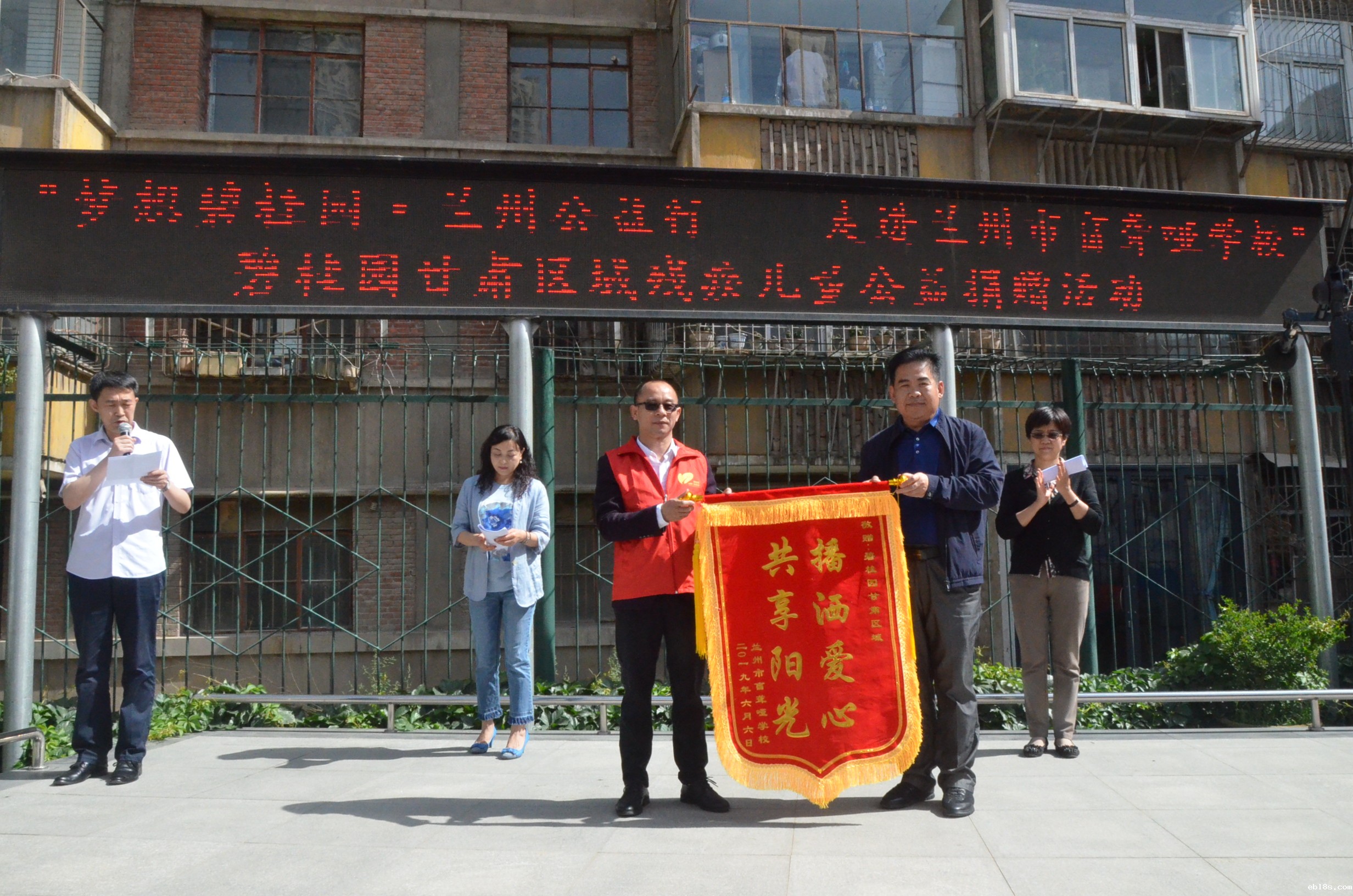 为了帮助残疾人和残疾学生提高生活质量,同时倡导社会各界爱心人士和爱心企业积极参与社会生活,践行社会责任,碧桂园甘肃区域和我会联合实施“梦想碧桂园•百城公益行”校服捐赠项目,向兰州市盲聋哑学校捐赠新校服320套,总价值32700元。6月6日在兰州举行捐赠仪式。省残疾人福利基金会副秘书长吕冰;兰州市盲聋哑学校党总支副书记沈磊,副校长杜学锋、王 毅,碧桂园甘肃区域副总裁吴绍权、营销管理部总经理刘斌 以及省基金会和市盲聋哑学校老师、碧桂园甘肃区域党支部、志愿者代表、残疾学生共计200多人参加了捐赠仪式。