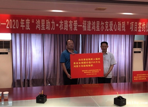 仪式上,马新平理事长对福建省残疾人福利基金会的无私精神和福建鸿星尔克体育用品有限公司的善举表示感谢,对福建省残疾人福利基金会敬业、专业、务实的工作态度表示赞许,并表示要以福建基金会效率高、执行力强的工作作风为榜样,严格按照项目实施方案要求把项目做实、做好。希望福建基金会一如既往地关心、支持甘肃残疾人事业发展,不断加大募捐力度,同时也期待与各兄弟基金会的进一步合作,使更多的残疾人受益,为扶残助残事业贡献力量。