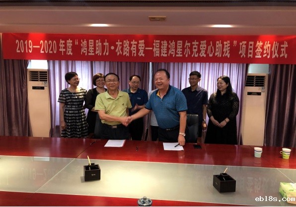 10月10日,“鸿星助力•衣路有爱—福建鸿星尔克爱心助残”项目签约仪式在福建省福州市举行。福建省残疾人福利基金会向我会捐赠价值250万元的鸿星尔克服装,用于资助我省残疾人公益事业发展,伟德足球网址理事长马新平赴福州参加项目签约仪式,福建基金会理事长刘新明,副理事长陈振环、李继新,秘书长余一澜及山东、河北、天津等省市残疾人福利基金会负责人参加仪式。